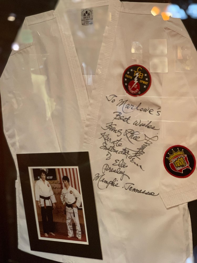 Our version of his famous sandwich served as a dessert. A donut with vanilla ice cream, creamy peanut butter sauce and sauteed bananas. A dollop of whipped cream to finish.